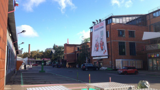 14 августа напротив редакции телеканала "Дождь" появился баннер арт-сообщества "Главплакат". Он изображает телеканалы РБК и "Дождь".