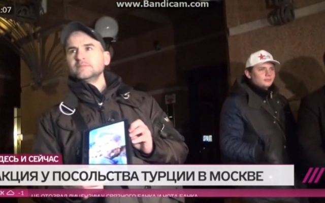 24 ноября активисты из московского регионального отделения партии "РОДИНА" провели у здания турецкого посольства акцию. Столичные социал-патриоты собрались, чтобы выразить протест против совершённого накануне преступления турецких ВВС, которые сбили российский самолёт на территории Сирии.
